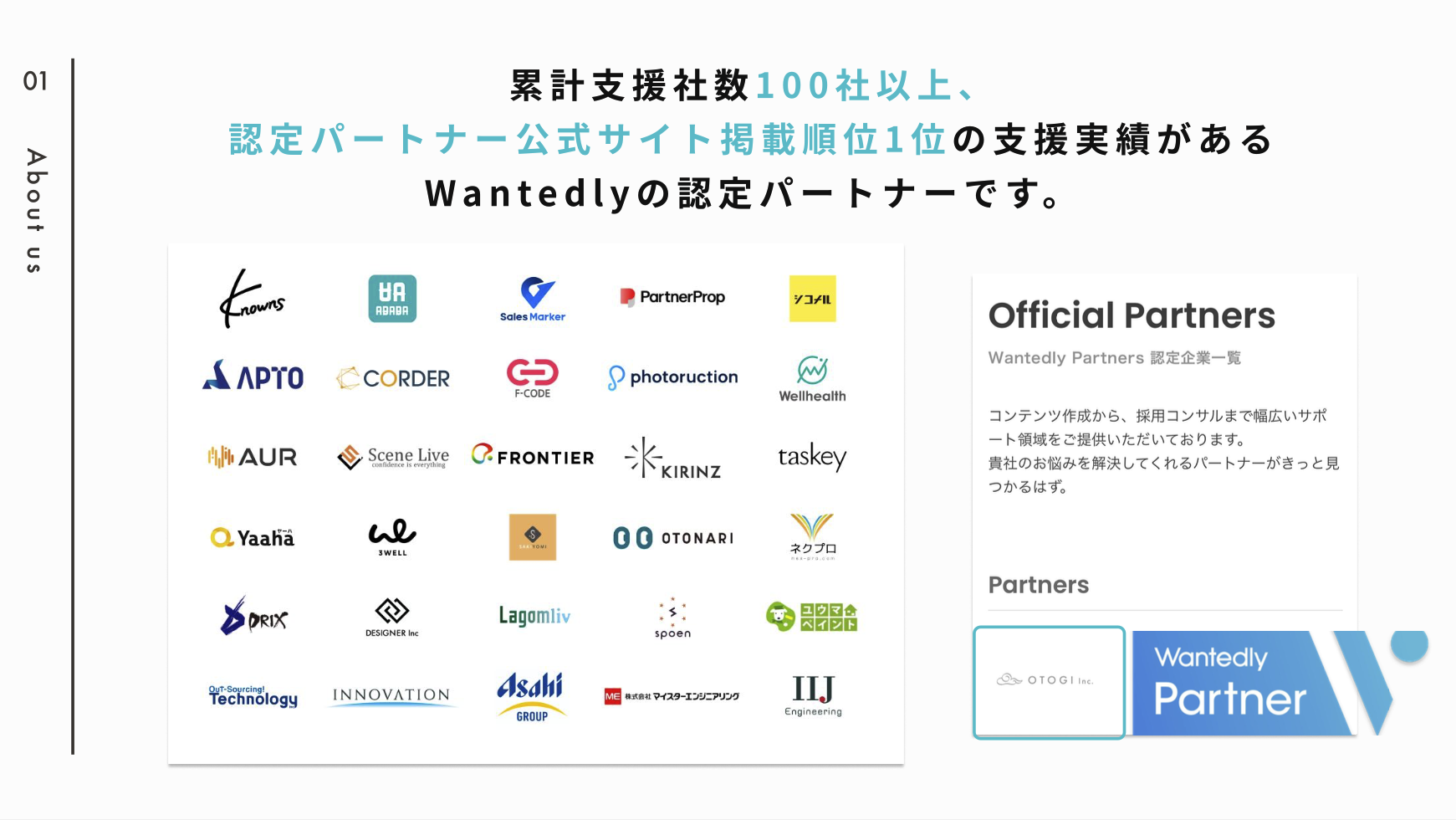 弊社はWantedly社が認定するトップパートナーであり、Wantedlyの運用において、高い実績を出させていただいております。