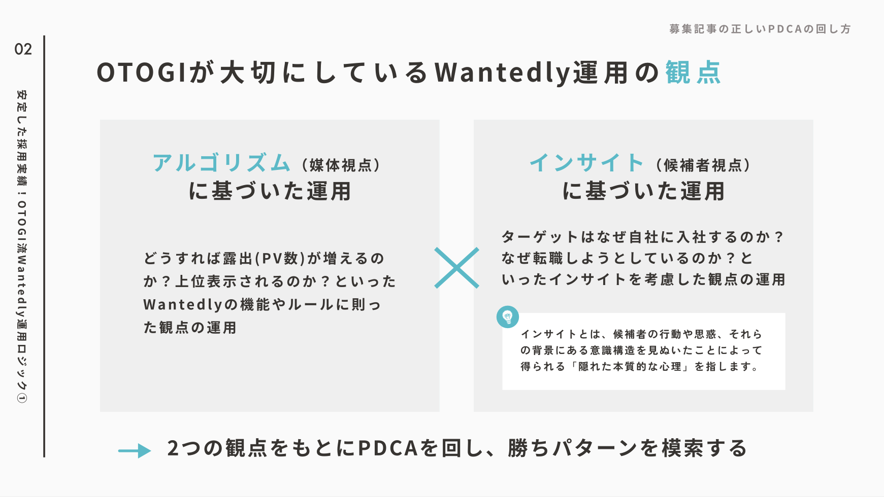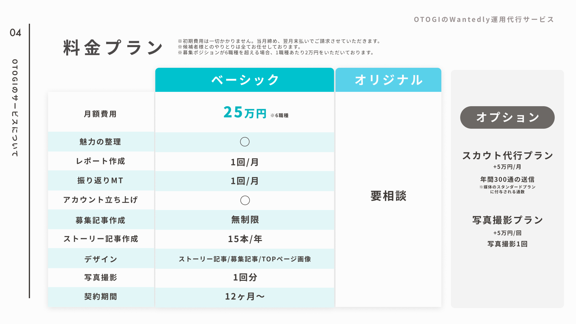 OTOGIでは、「アルゴリズム(媒体視点)に基づいた運用」と「インサイト(候補者視点)に基づいた運用」の両方を重視し、戦略立案からアカウント立ち上げ、コンテンツ制作、募集記事の運用、スカウト配信、レポート作成、定例MTG、デザイン、写真撮影まで全てを実施し、企業様の採用力の強化を実現します。