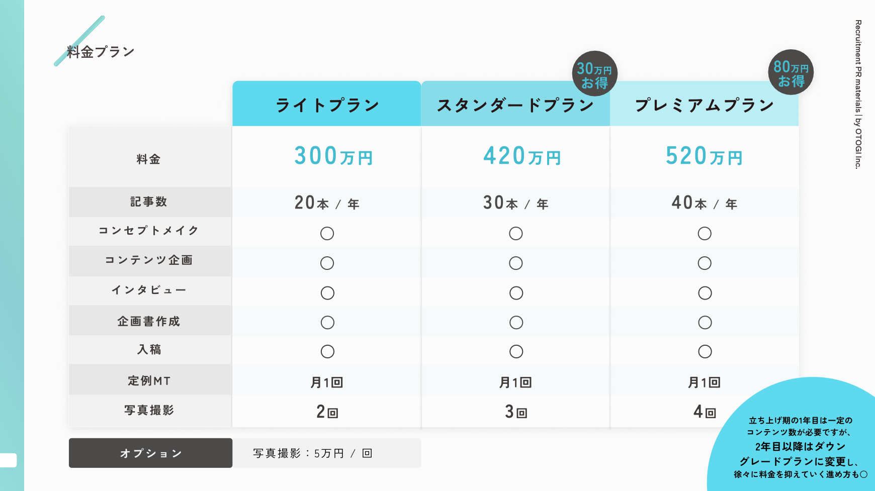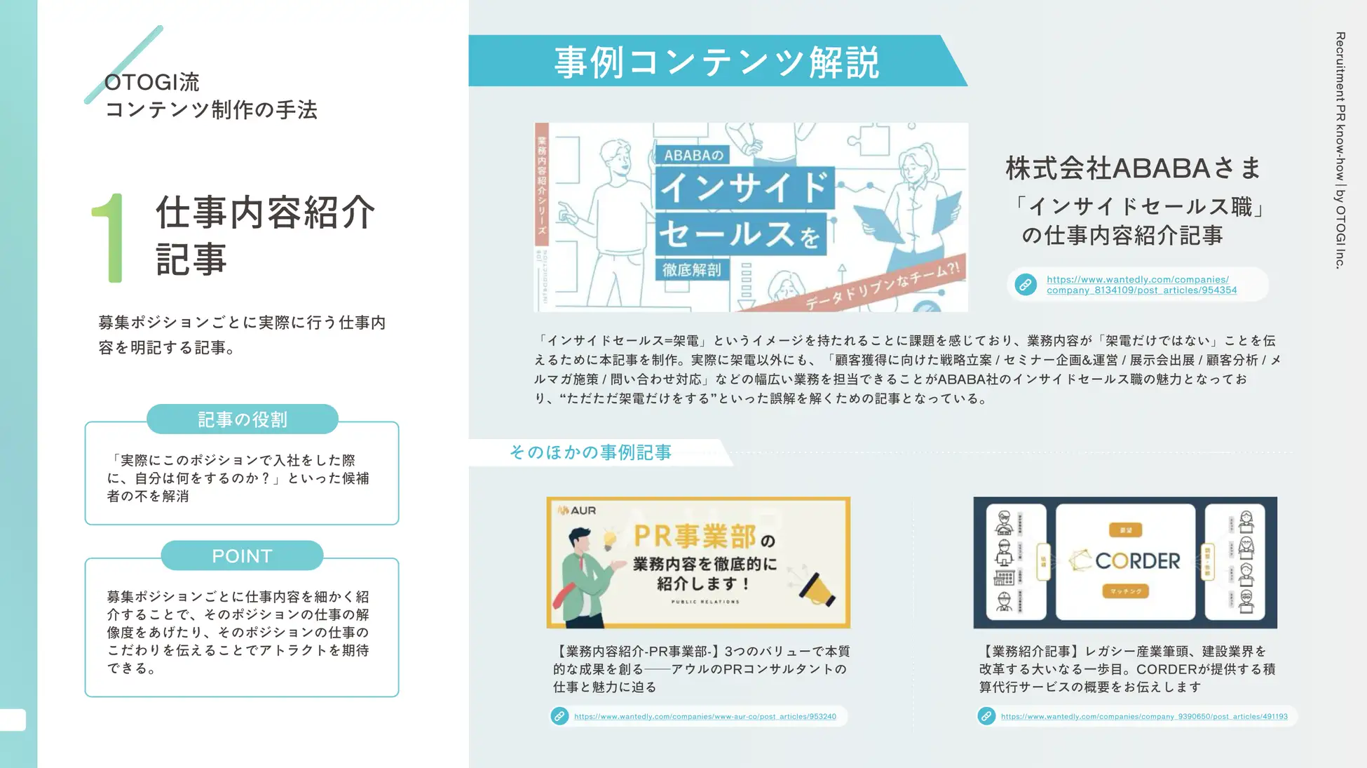 OTOGIの「採用広報支援サービス」は、コンテンツ制作を通じて、企業の魅力を深掘りしながら、採用候補者層に向けた会社の理解度向上を図る採用広報をワンストップで支援します。