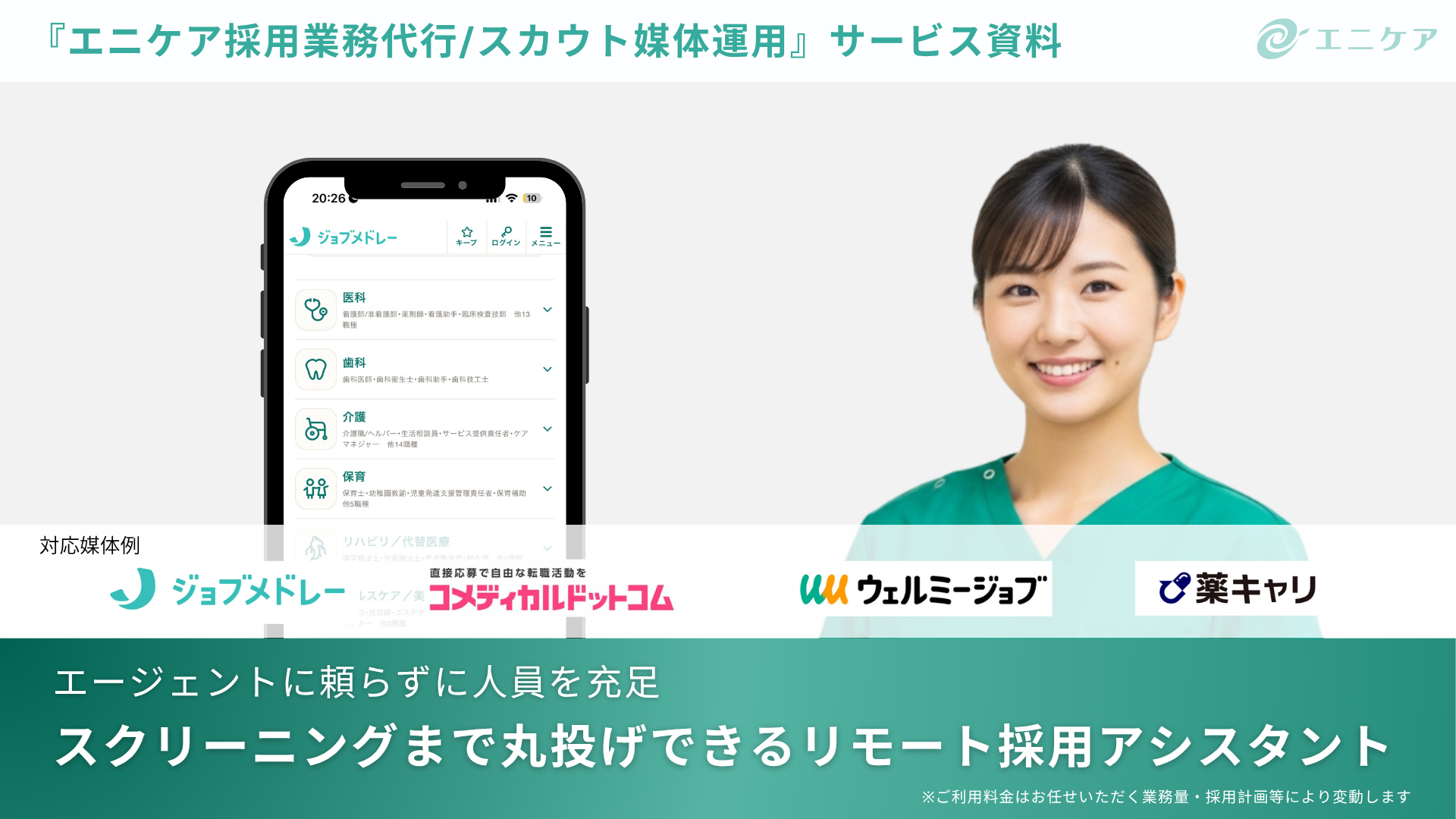 【医療介護】「エージェントに頼らずに人員を充足」 スクリーニングまで丸投げできるリモート採用アシスタント