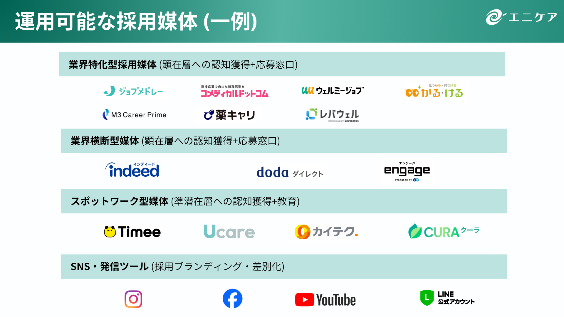 - 医療・福祉業界に強い、美容業界(エステ/美容院)に強い、中小企業の採用に強い
