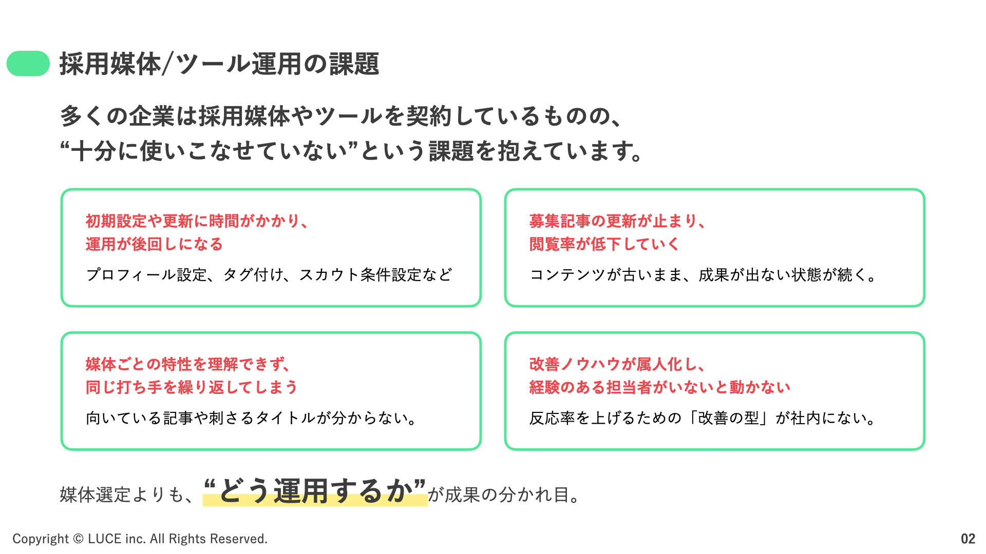 ② スカウト配信や媒体管理の工数が足りない
