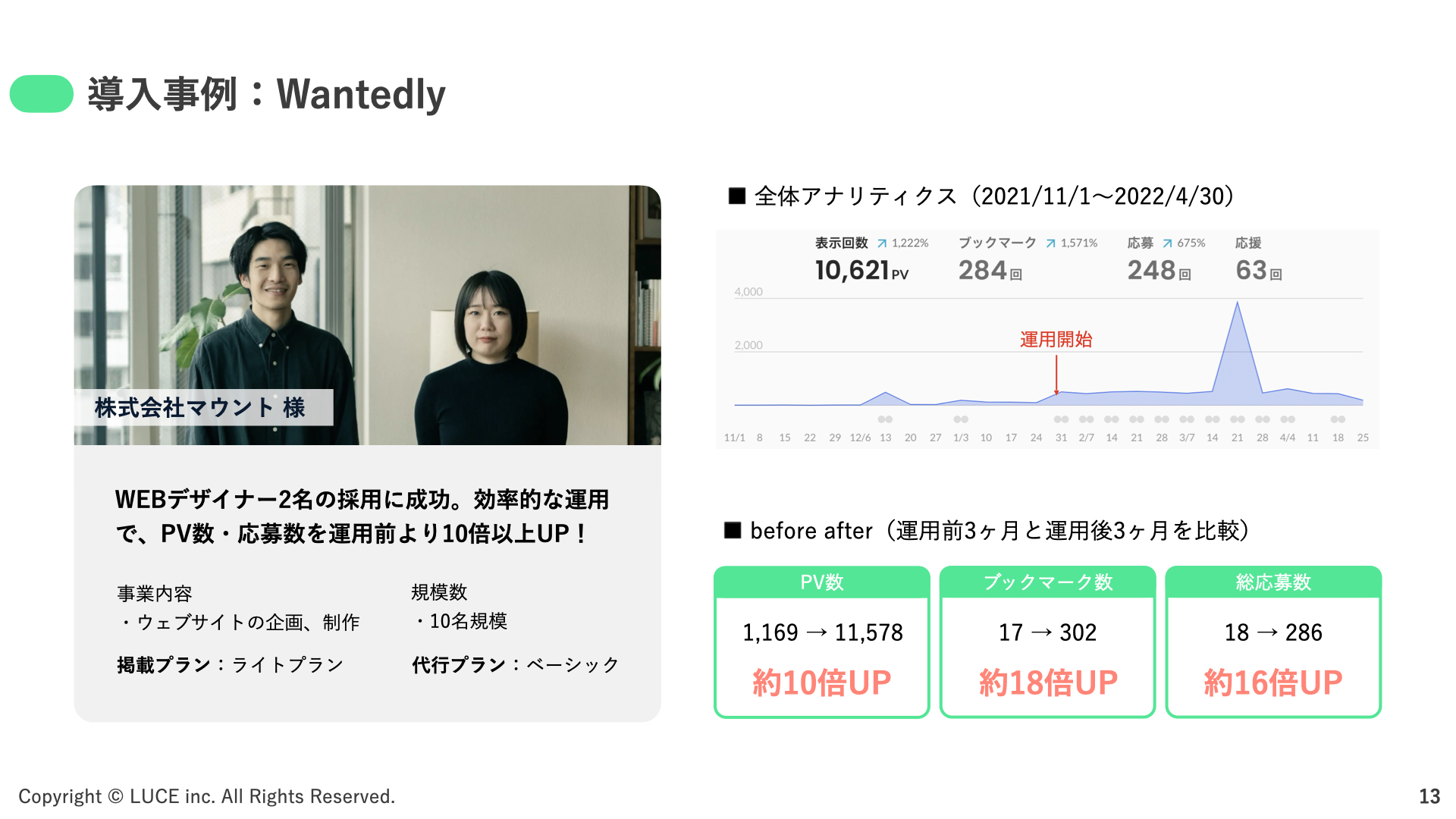 単なる作業代行ではなく、採用成果につながる運用改善を重視し、企業ごとの採用課題やターゲット人材に合わせた運用設計を行うことで、応募数の増加や採用効率の向上を支援します。