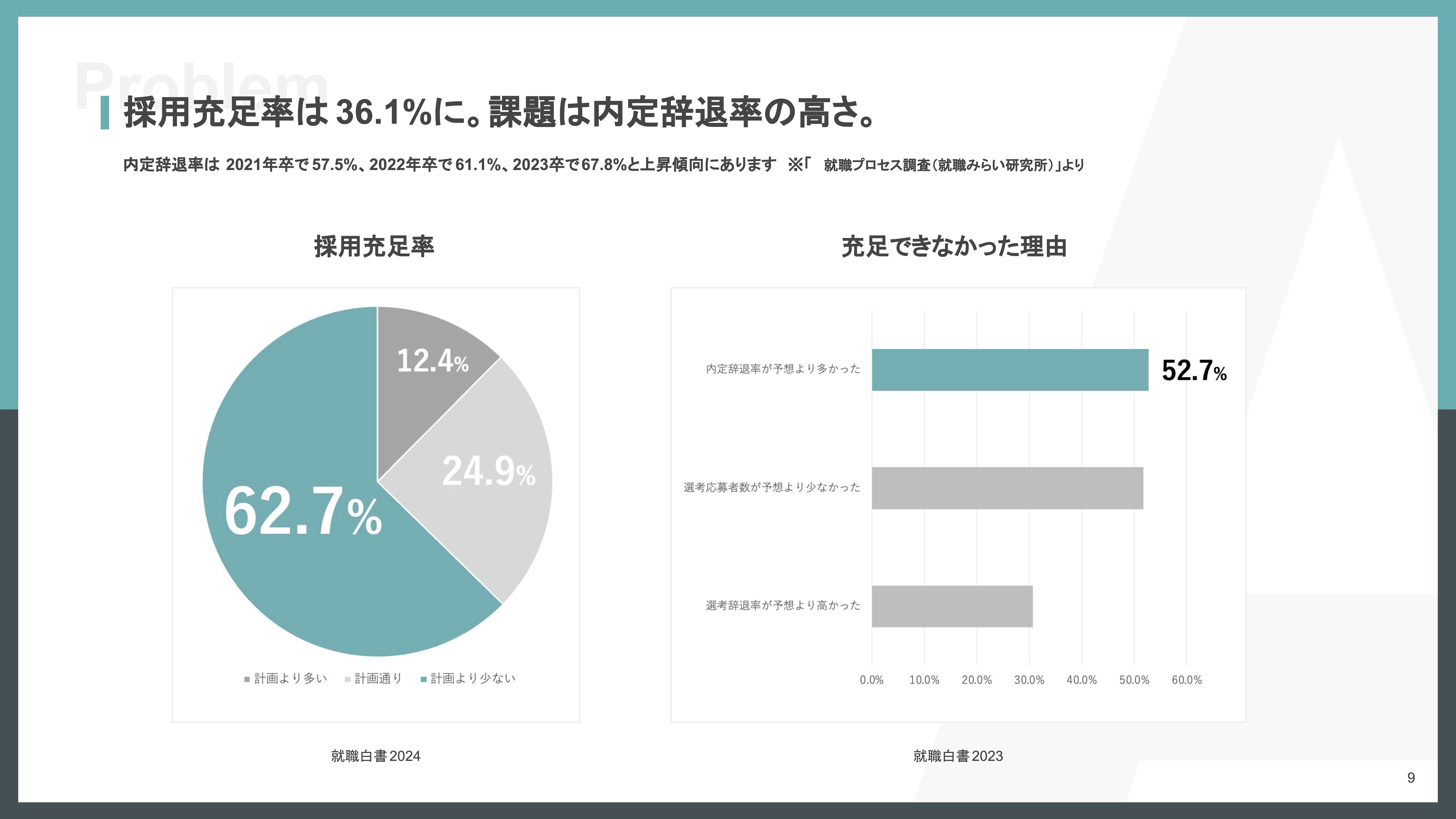 - 特定ターゲットの応募者不足、選考や内定の辞退者増加、採用ミスマッチの増加