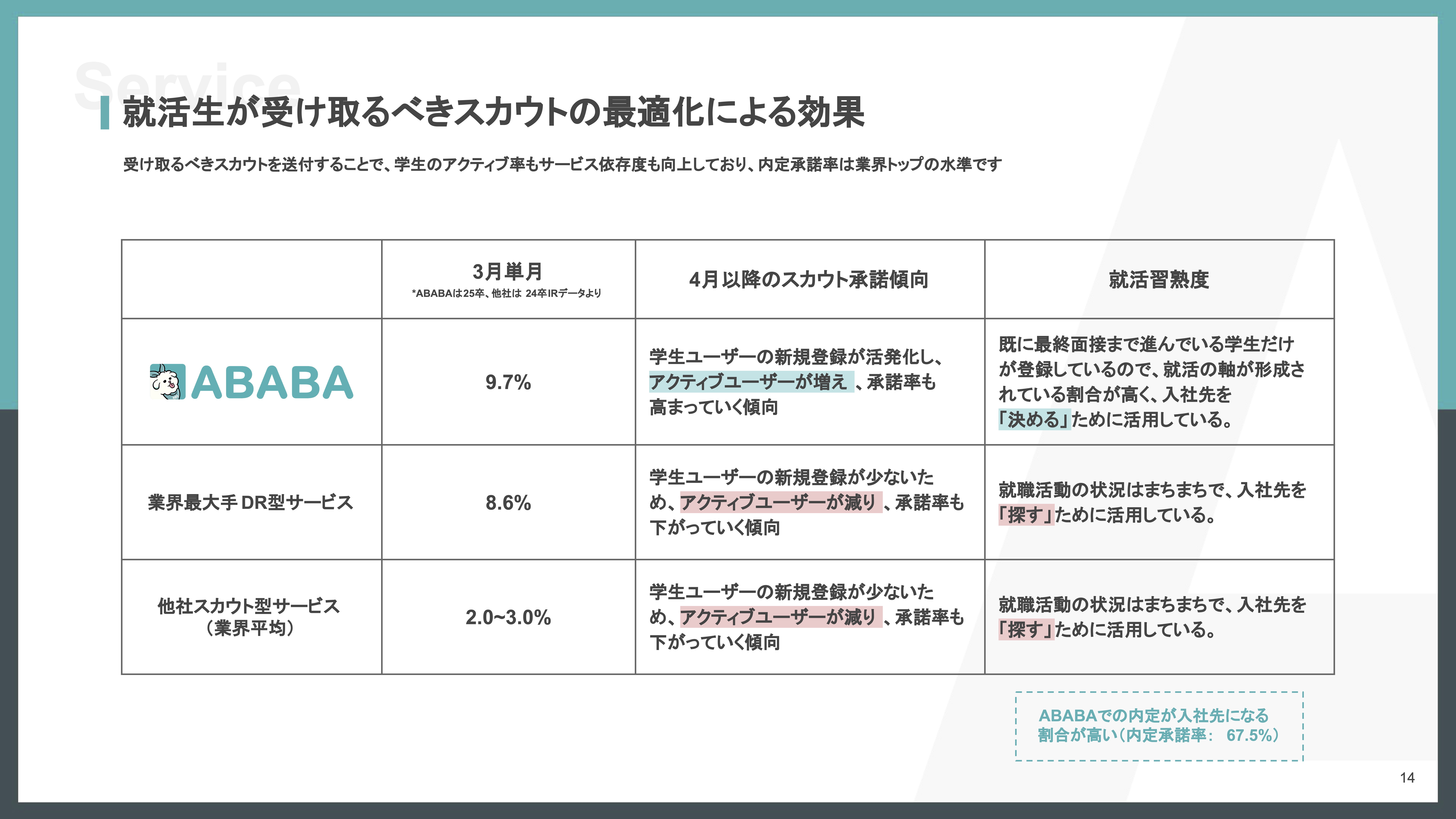 最終面接まで進んだ優秀学生へアプローチ『ABABA』