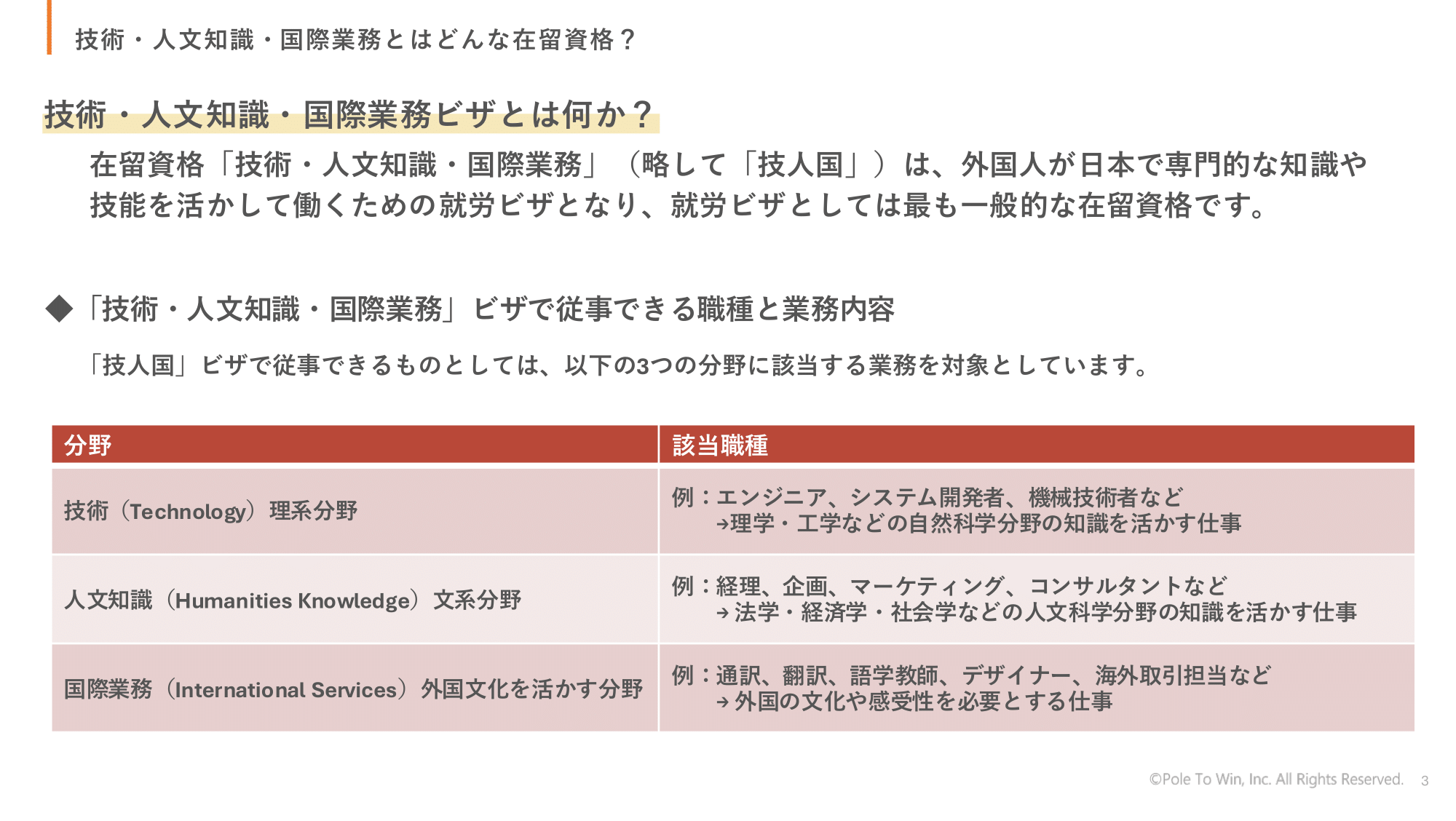 本資料では、「技術・人文知識・国際業務」ビザについて、詳しく解説しています。